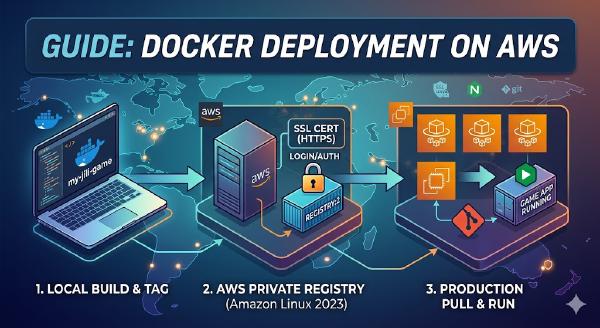 前言 # 在 AWS EC2 上部署 Docker 镜像有多种方式,当你有 SSL 证书并希望通过 Nginx 反向代理实现 HTTPS 访问和用户认证时,自建 Docker Registry 是最节省成本且完全自主的方案。本文记录从镜像部署到生产拉取的全流程。